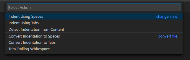 Convert Indentation to Tabs 누른 뒤 다시 저 창을 띄워서 Detect Indentation from contents로 바꾸자. 변경이 된 것을 확인 가능하다.